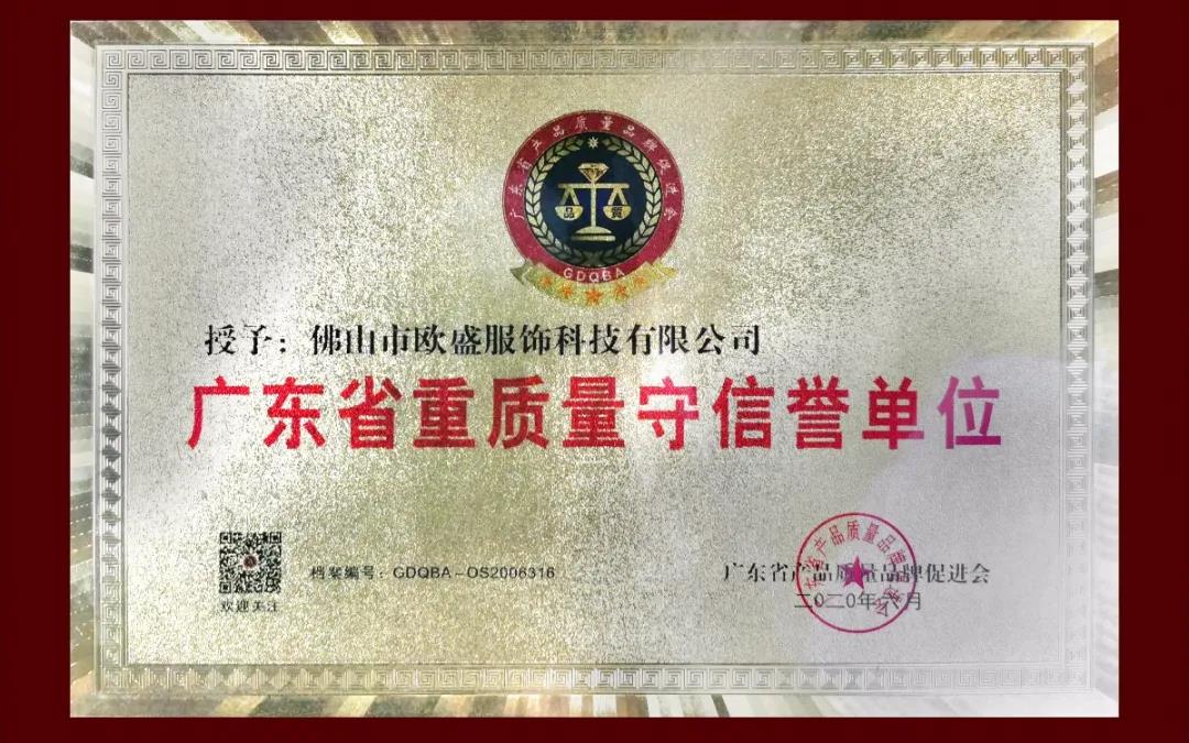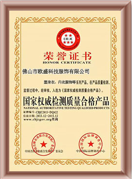 歐盛服飾榮獲多項(xiàng)產(chǎn)品證書